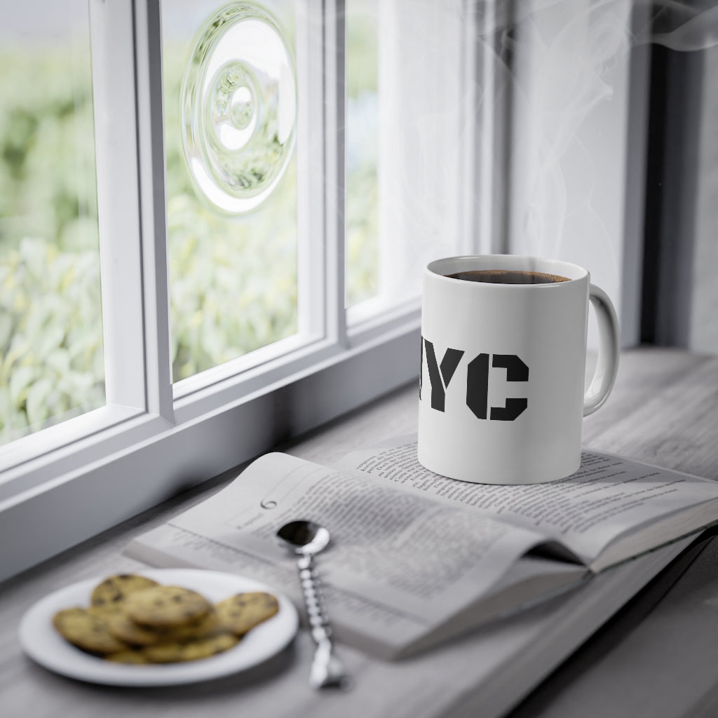 Stir some personality into a freshly-brewed cup of joe. Your designs will be printed with a glossy finish on the durable, white ceramic base, using premium-quality ORCA coating. This 11oz mug is sturdy and durable, with a C-shaped handle so people can hold on tight when that caffeine finally hits.